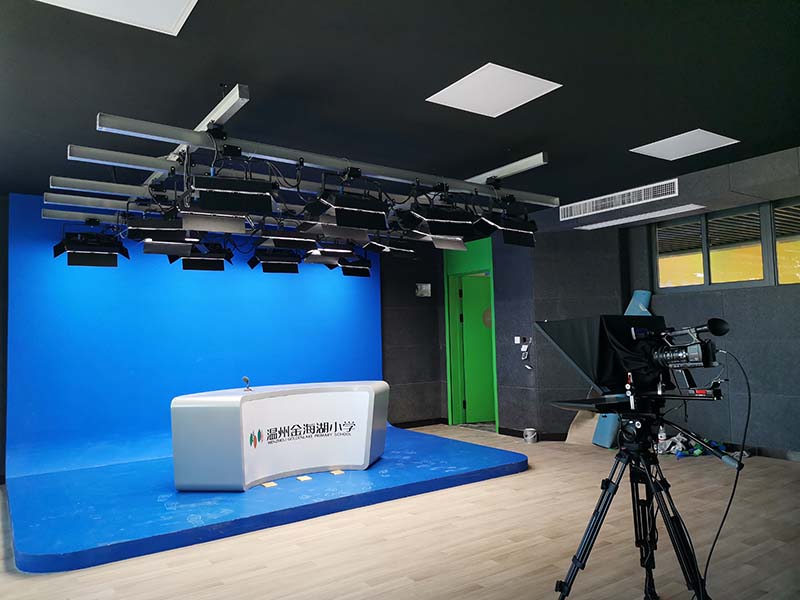 虚拟演播室是一种全新的电视节目制作工具,虚拟演播室技术包括摄像机跟踪技术、计算机虚拟场景设计、色键技术、灯光技术等。虚拟演播室技术是在传统色键抠像技术的基础上,充分利用了计算机三维图形技术和视频合成技术,根据摄像机的位置与参数,使三维虚拟场景的透视关系与前景保持一致,经过色键合成后,使得前景中的主持人看起来完全浸尽于计算机所产生的三维虚拟场景中,而且能在其中运动,从而创造出逼真的、立体感很强的电视演播室效果。